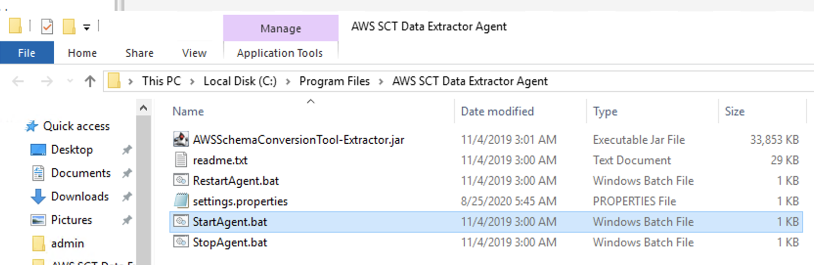 Search for AWS SCT Data Extractor Agent in Windows Start and launch the program. When the AWS SCT Data Extractor Agent folder opens, click on settings.properties file.